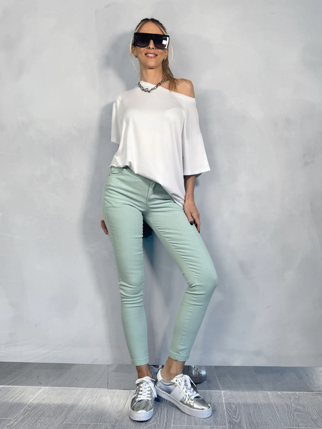 5 bolsillos reales no vista, boton con logo de la marca y cierre YKK