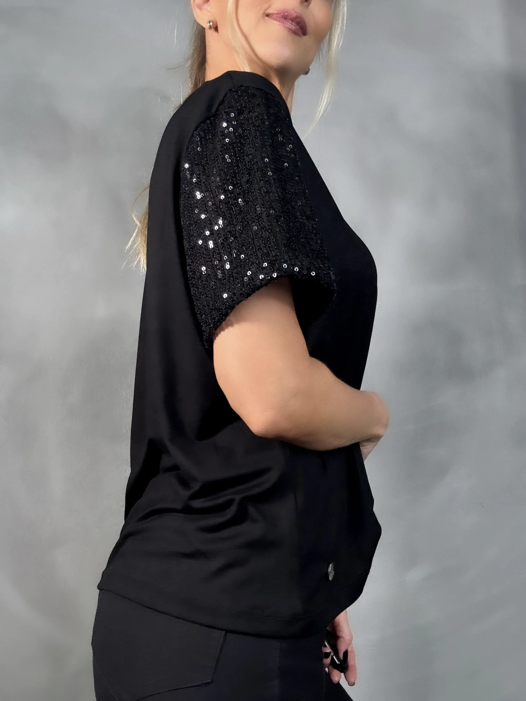 Detalles en las mangas de lentejuelas totalmente forradas